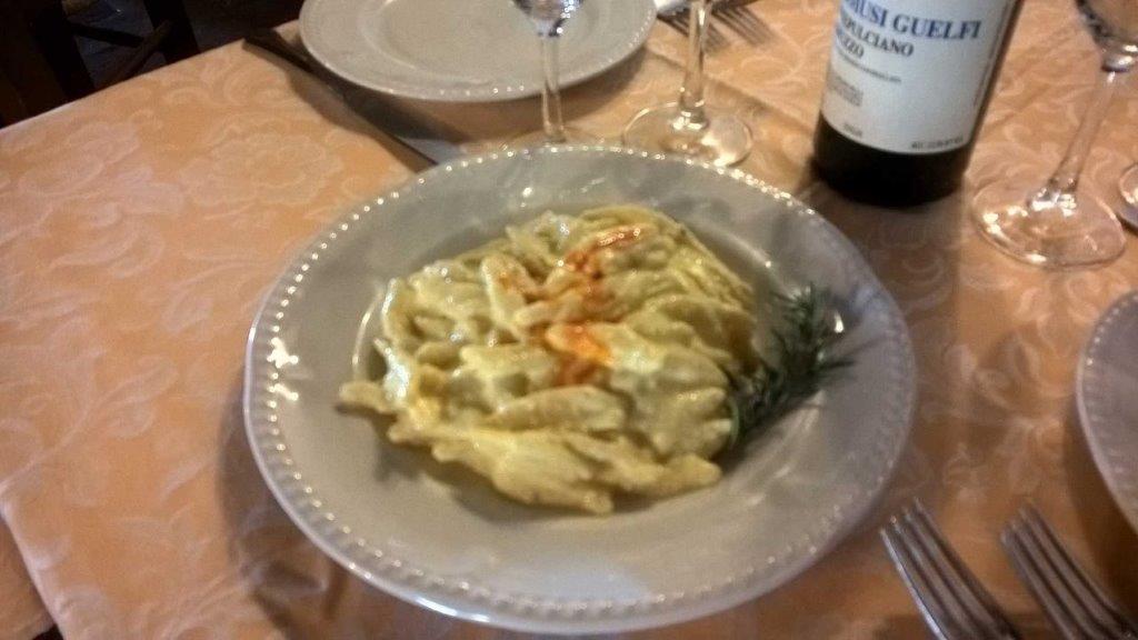 A seconda delle stagioni vengono proposti altri piatti di pasta fresca con ortaggi locali, come le fettuccine all’ortolana, o le trofie con ceci e melanzane.
