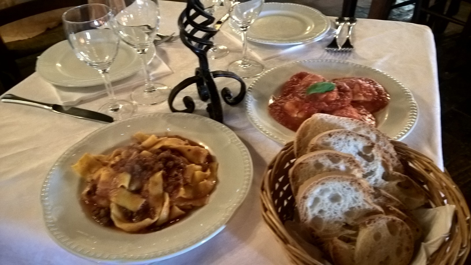 Tra i primi piatti il Rifugio offre una scelta di diverse paste fatte in casa, tra queste le pappardelle al ragù di cinghiale, i ravioli di ricotta, gli spaghetti alla chitarra con funghi, i gnocchi di ceci e patate al sugo di castrato o al radicchio.