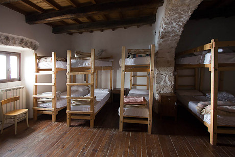 The Rifugio's Camerata is a dormitory with eight wooden bunk beds, sleeping up to 16 [... red more ]