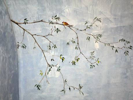 La camera Blu, dal colore azzurro delle sue pareti, è molto spaziosa, ha un letto matrimoniale di misura grande (180 x 200) che può dividersi in due letti singoli, un terzo letto leggermente più corto, per ospitare un bambino fino a dodici anni, e nella seconda stanza, comunicante, con la decorazione di un albero alla parete, vi è ancora un quarto letto singolo standard. Su una delle pareti della camera principale è stato lasciato l’intonaco originale. Ha un comodo bagno con doccia ed è dotata di impianto di riscaldamento a pavimento. Anche questa camera è stata per molti anni un giardino a cielo aperto.