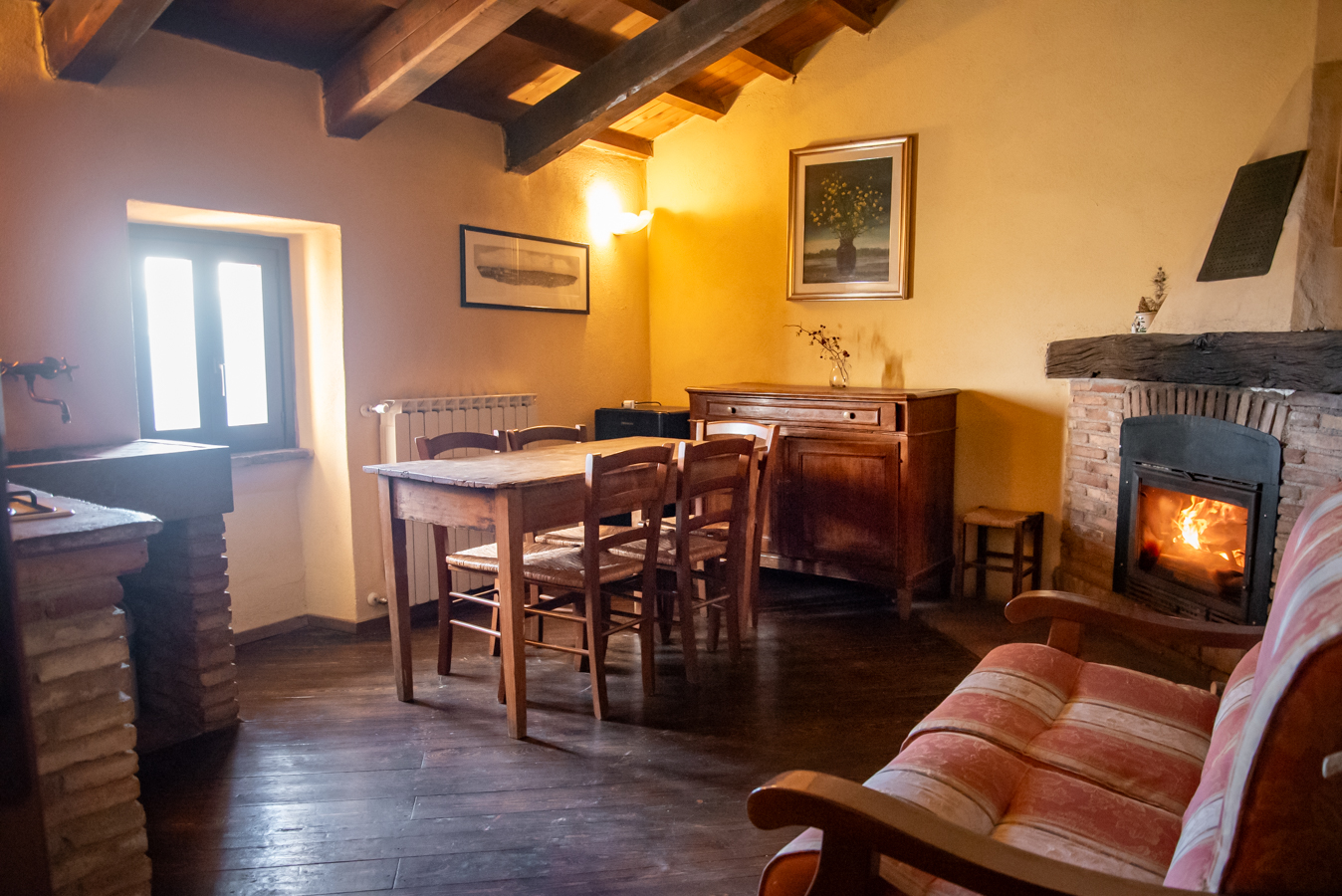 L'appartamento si trova in un edificio della parte più alta del borgo, e gode di una vista spettacolare verso valle. E' una sistemazione autonoma perché dotata di un soggiorno con angolo cottura, ideale per famiglie di 4 persone o piccoli gruppi. E’ composto da una camera con letto matrimoniale, una mansarda con due letti singoli, un comodo bagno con doccia, un soggiorno con angolo cottura. L’Appartamento è riscaldato con termosifoni ed un termocamino. E' fornito di biancheria da letto e da bagno, e nel prezzo è compresa anche la prima colazione. Da sapere prima: la mansarda con i due letti singoli è piuttosto bassa, non ha finestre ma due lucernari. E dal letto è possibile osservare le stelle. Animali NON ammessi
